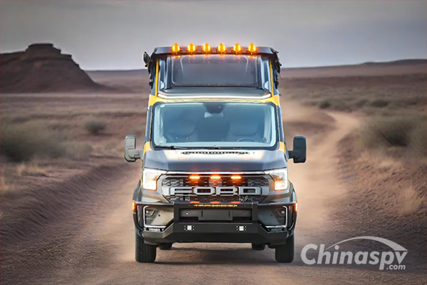 In terms of interior design, a relatively simple color scheme is chosen, with a wood style and a high-end gray color. The interior panels of the vehicle extensively use suede inserts. The vehicle can accommodate 4 people, featuring a double-row single-seat sofa, a rear bathroom, a kitchen on the side, and a horizontal double-person bed at the rear.