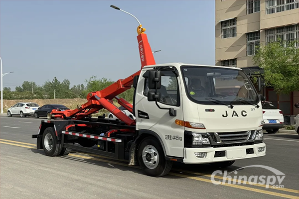Leverage mechanism, 175 large and thick high-quality hydraulic cylinders. Composed of the base frame, flipping frame, lever hook and locking mechanism, it can complete the hooking, unhooking and unloading operations of the sealed garbage truck body.